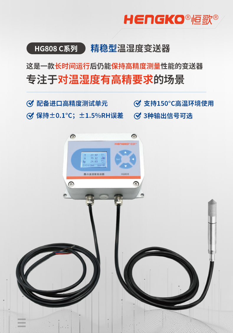 HG808-C系列高精度溫濕度變送器-溫濕度精度±0.1°C(±1.5%RH)