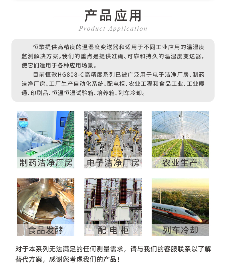 恒歌808-C系列是一款專為溫濕度有高測量要求的場景研發的精穩型溫濕度變送器,通過采用高精度傳感器和先進的校準技術,使變送器在0~100%RH及?-50°C~+150°C測量范圍內,典型精度可達1.5%及+0.1℃,確保了設備在長時間運行后仍能保持高精度測量性能。也基于其精穩型特點,設備被廣泛應用在生物制藥、精密機械加工、實驗室研究、食品加工與儲存等多個領域。