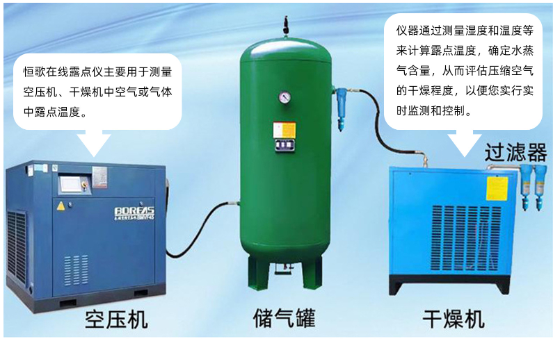 在壓縮空氣系統和除濕機等工業設備中,對氣體濕度的實時監測是保證設備正常運行和工作效率的關鍵。恒歌 HG602-D微型露點變送器,可分別作為空壓機在線露點儀...